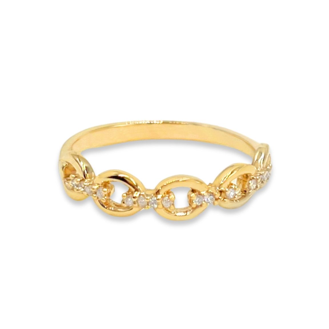 Anillo entrelazado con engastes de cristales, elaborado en Oro 18k.