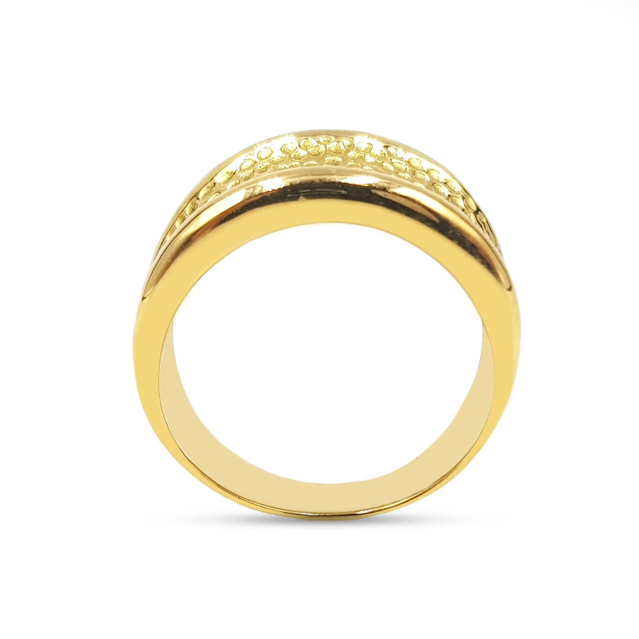 Anillo con detalles tallados a mano, elaborado en Oro 18Kts.