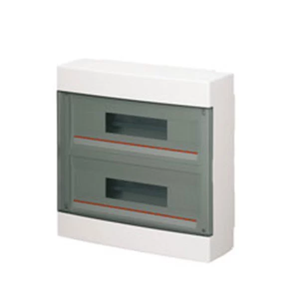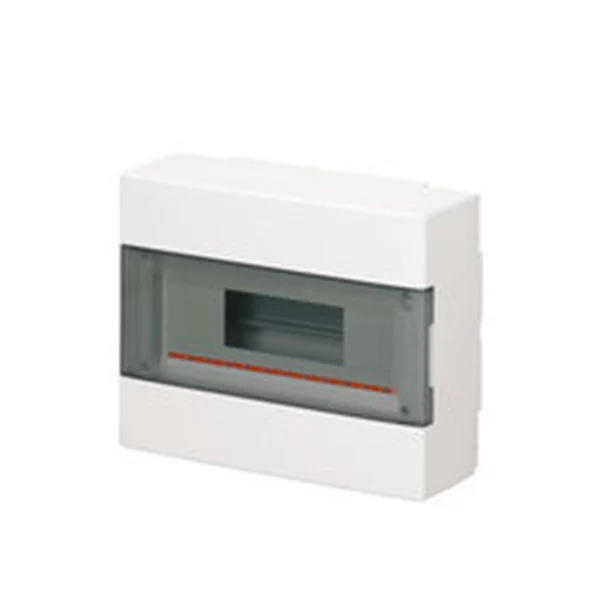 Armario cuadro eléctrico para superficie con diferentes módulos con puerta transparente.