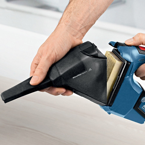 - La Aspiradora de Polvo a Batería Bosch GAS 12V-LI, 12V, además de ser súper liviana y compacta, tiene un excelente desempeño en la remoción de polvo, gracias al alto rendimiento del micro filtro. Además de esto, extrae diferentes tipos de suciedad y viene con boquilla para hendiduras para alcanzar espacios estrechos. Fácil sistema de cambio de filtro y desecho de polvo, ¡con solo un clic!