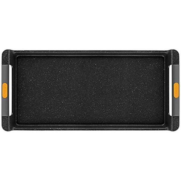 Bandeja fabricada en aluminio fundido de gran grosor, indeformable y con 5 capas de antiadherente de alta calidad Durion Plus libre 100% de PFOA. Asador rectangular con una superficie de cocción igual que su fondo difusor con una aplicación directa del calor en toda la superficie.