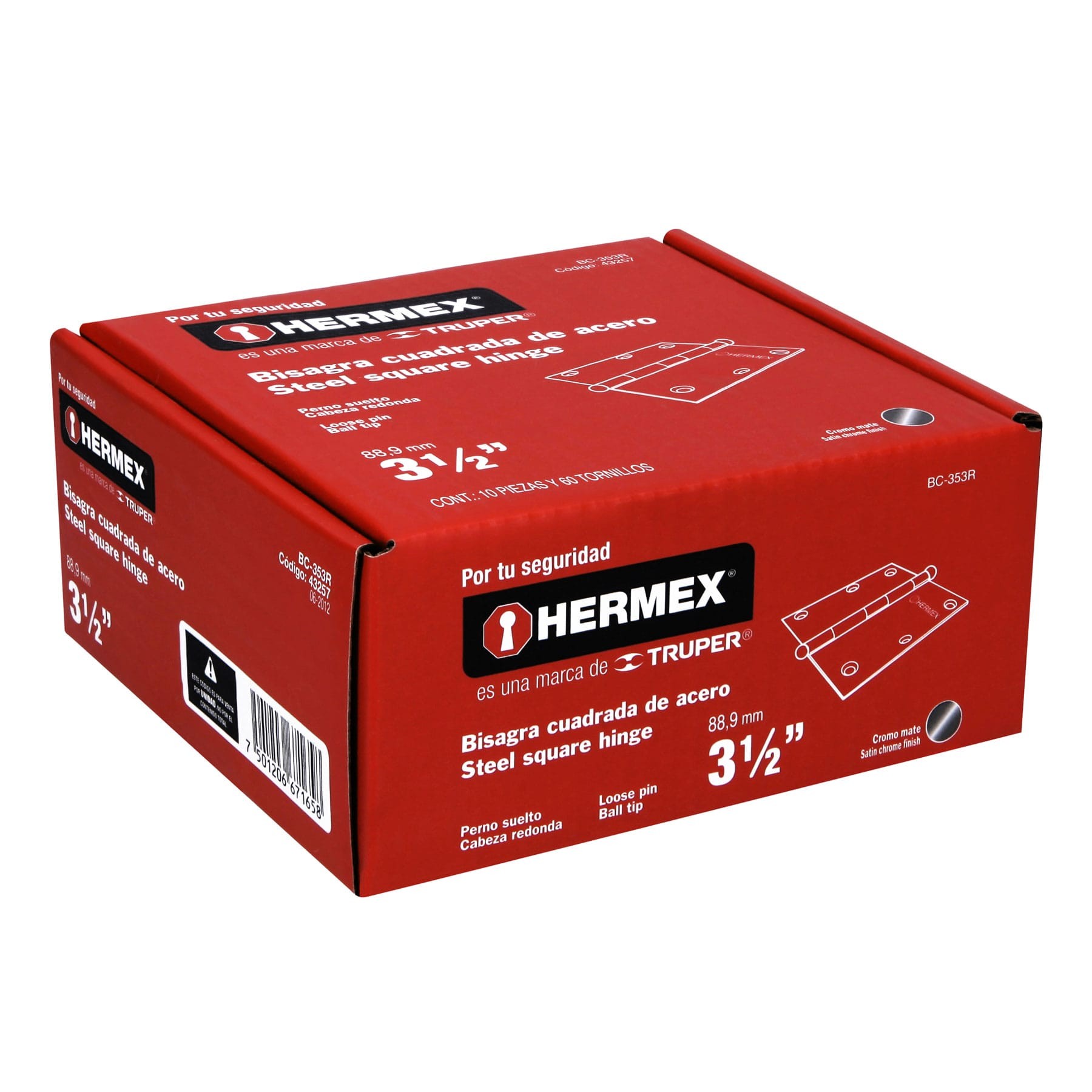 Bisagra cuadrada 3-1/2″ acero cromo mate, redonda, BC-353R Hermex 432572,99 € Fabricadas de acero con acabado cromo mate Perno suelto con cabeza redonda 30% Mayor espesor que las marcas tradicionales Para uso en carpintería y en la industria mueblera Bisagra cuadrada 3-1/2″ acero cromo mate, redonda, BC-353R Hermex 43257 cantidad Añadir al carrito Categorías: Bisagras, Capuchina, Herramientas Manuales Descripción Valoraciones (0) Descripción Clave BC-353R Medida 3 1/2″( 89 mm) Espesor 2.2 mm Número de orificios 6 Inner 10 Master 100 Valoraciones No hay valoraciones aún. Sé el primero en valorar “Bisagra cuadrada 3-1/2″ acero cromo mate, redonda, BC-353R Hermex 43257” Cancelar la respuestaTu dirección de correo electrónico no será publicada. Los campos obligatorios están marcados con *Tu puntuación * Puntuar… Perfecto Bueno Normal No está tan mal Muy pobre Tu valoración *Nombre * Correo electrónico * Guarda mi nombre, correo electrónico y web en este navegador para la próxima vez que comente. Productos relacionados ¡Oferta! Soporte metálico para electroimán ZL 600 Lbs. – 9072 – YALE 27,38 € El precio original era: 27,38 €.16,42 €El precio actual es: 16,42 €. Añadir al carrito ¡Oferta! Desarmador plano 1/4″ x 8″ mango Comfort Grip, Truper DR-1/4X8B 100833 5,08 € El precio original era: 5,08 €.2,99 €El precio actual es: 2,99 €. Añadir al carrito ¡Oferta! Serrucho plegable 12″ hoja curva 6 DPP, mango madera, Truper STP-12PL 18178 11,46 € El precio original era: 11,46 €.4,65 €El precio actual es: 4,65 €. Añadir al carrito ¡Oferta! Juego de 9 llaves combinadas mm, Pretul J-209M 21995 21,93 € El precio original era: 21,93 €.8,99 €El precio actual es: 8,99 €. Añadir al carrito