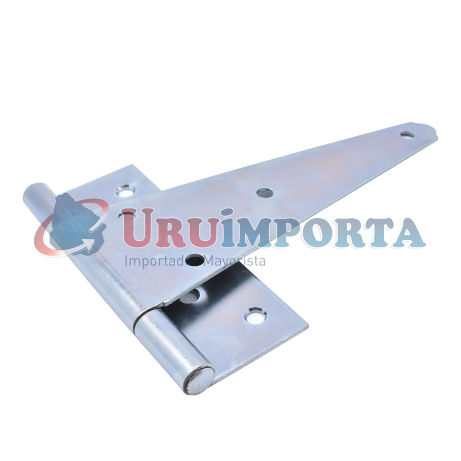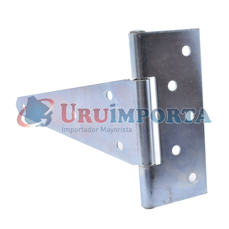 La parte rectangular mide 10cm x 3,5cm (largo x ancho), tiene 3 orificios para tornillos a 4cm uno del otro.