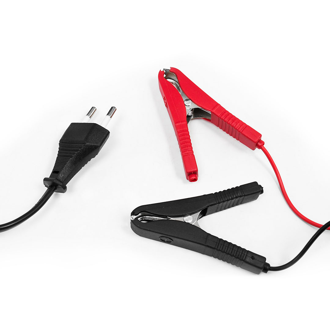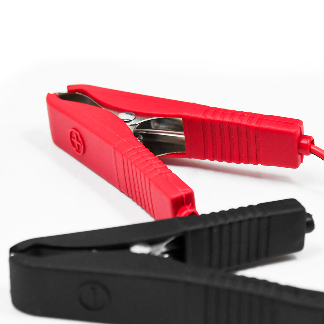 Incluye 2 pinzas (roja y negra) y manija en la parte superior para mejor traslado.