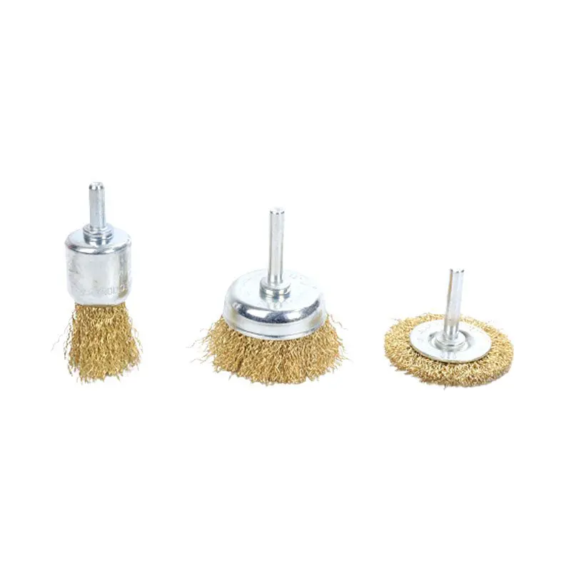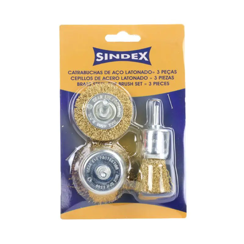 Juego de 3 carracas 85403, en acero latonado, con cepillo, disco y formato de vaso SINDEX®, con espiga de 6mm.