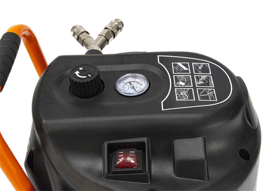 - Caudal de 220 L/min: Capaz de suministrar un volumen de aire suficiente para tareas que demandan una alta capacidad.