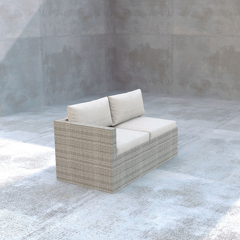 - Estructura metálica y ratán sintético plano, resistentes a la intemperie.