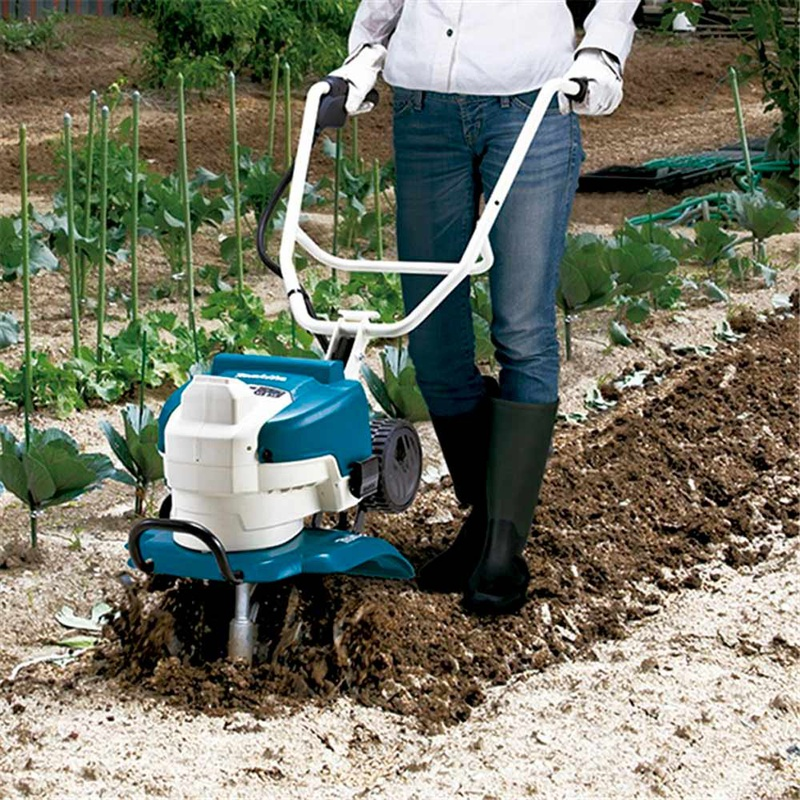 - Cultivador excepcionalmente silencioso con baterías de iones de litio de 36 V, ideal para el mantenimiento de huertos o camas en áreas residenciales, escuelas u hospitales o cualquier otro entorno sensible al ruido.