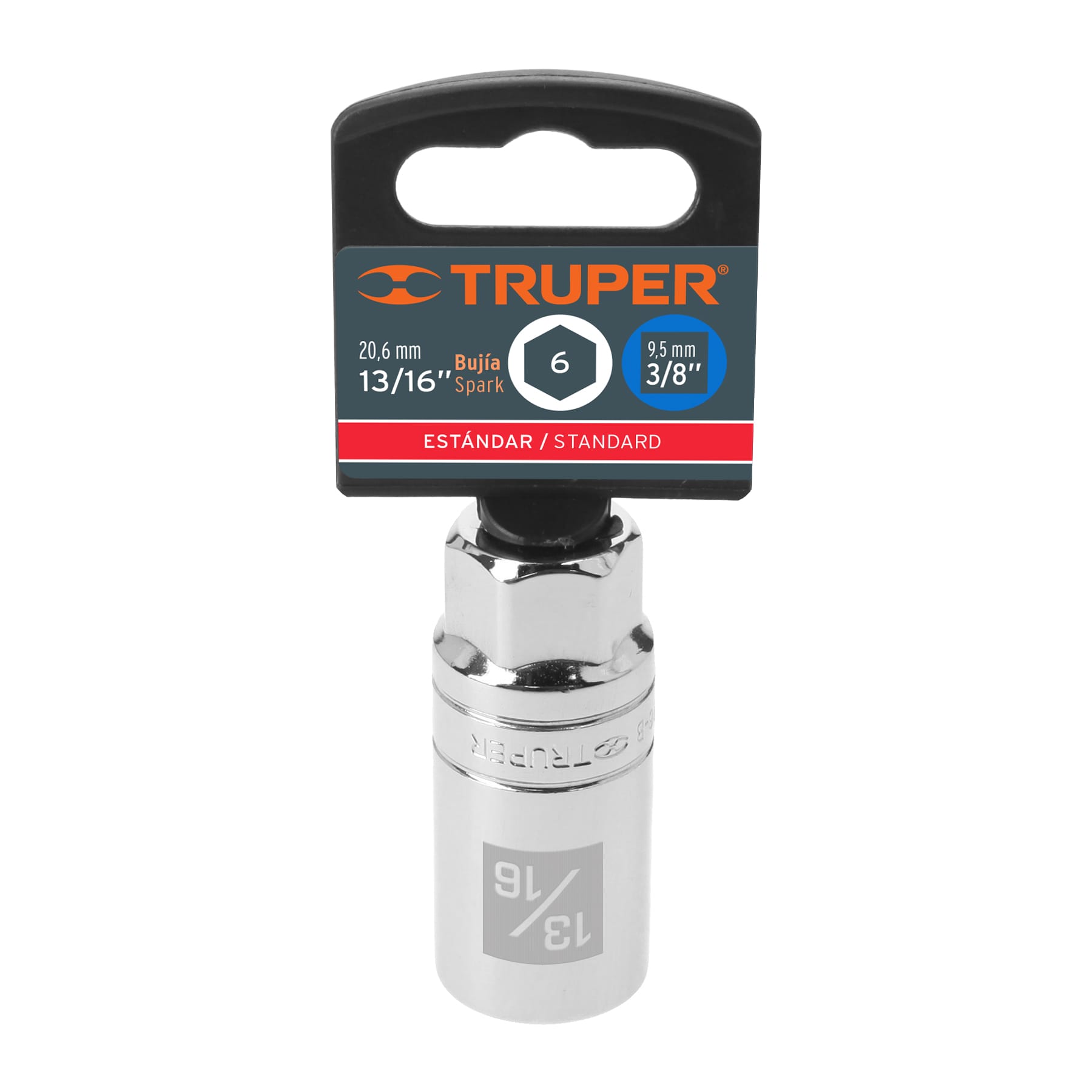 Dado para bujías de 13/16″, 6 puntas, cuadro 3/8″, Truper D-3826-B 13657