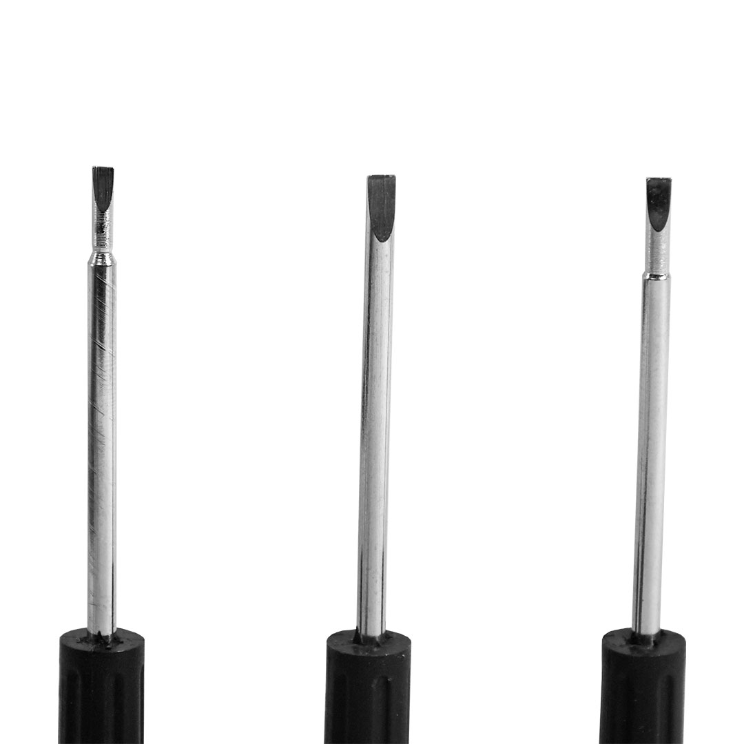 *Destornillador paleta, largo 13cm, ancho paleta 3mm, largo mango 8cm