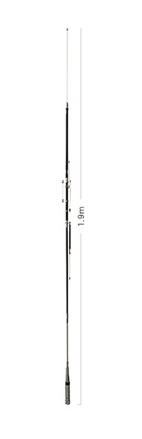 - Tipo: 1/4onda(7/14/21/28/50MHz), 1/2onda(144MHz), 2×5/8onda(430MHz) antena sin radial en 144/430MHz(2m/70cm)