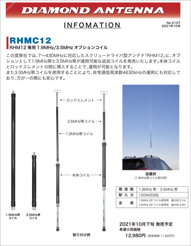 Juego de 2 bobinas opcionales para antena Diamond RHM12 de frecuencias 1,9 Mhz y 3,5 Mhz