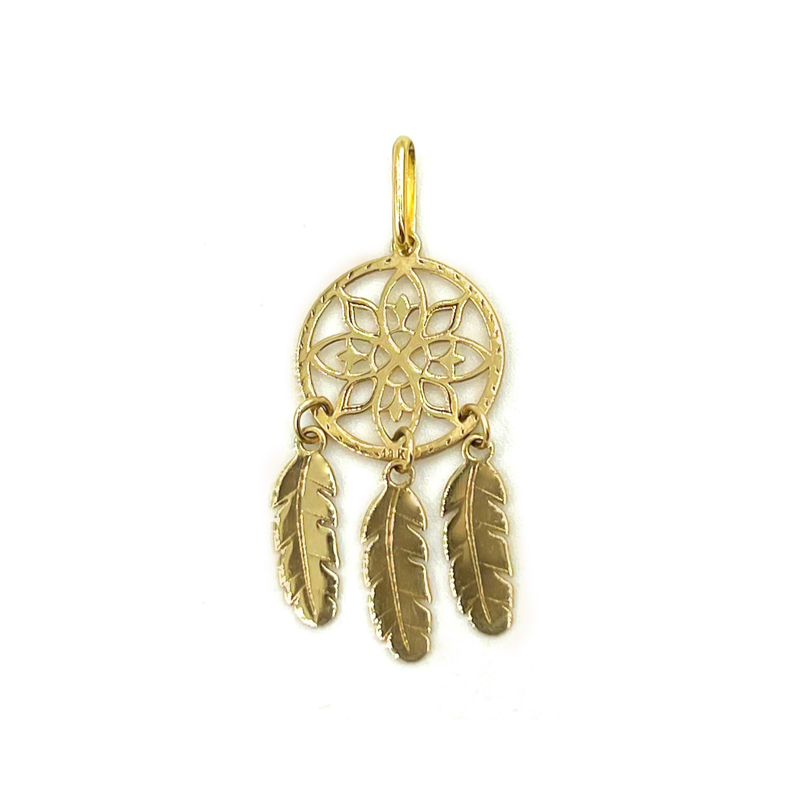 Dije con diseño de atrapa sueños elaborado en Oro de 18Kts.