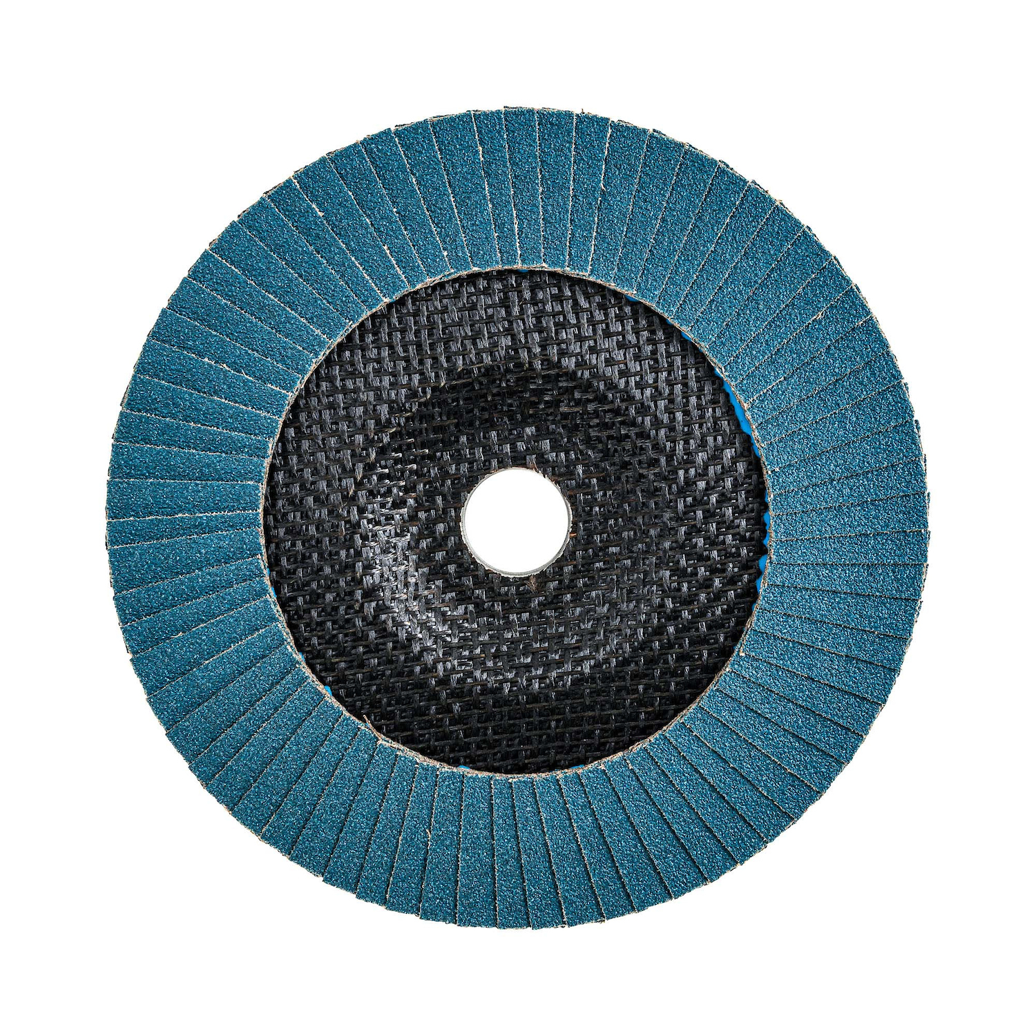 • Disco flap con soporte de fibra de vidrio para uso con esmeriladora angular de 7 pulgadas.