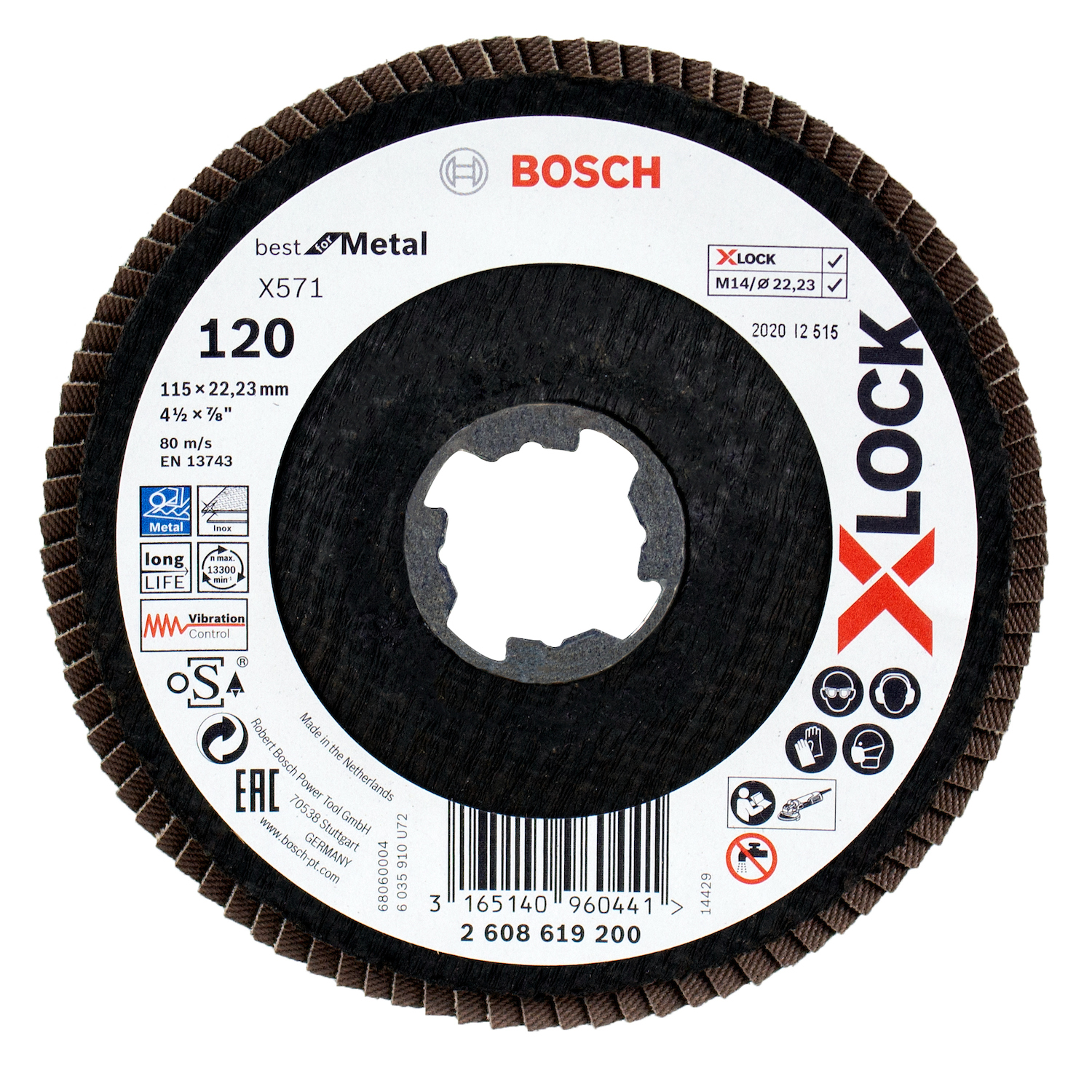 Disco Flap X571 X-LOCK Best for Metal, 115mm, G120, Curvo, Fibra de Vidrio BOSCH 2608.619.200-000
