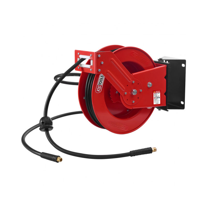 Propiedades generales: – Este enrollador tiene un soporte mural; – Construcción abierta; – Para aire comprimido; – Tambor basculante 180° con sujeción mural; – Tubo flexible de polímero híbrido elástico, resistente al retorcimiento; – Recuperación automática; – Mecanismo de sujeción con múltiples muescas por revolución; – Dispositivo de bloqueo; – Incluye tubo de conexión flexible de 2 m; – Modelo robusto de acero.