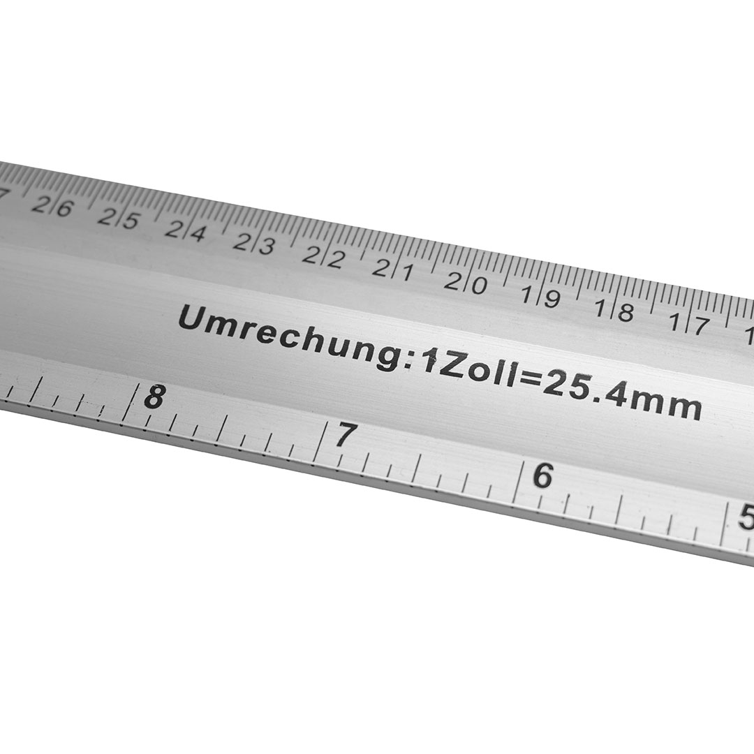 En la parte exterior del largo de la regla la medición está en centímetros (40cm) y en la parte interior de la misma la medición esta en pulgadas (14”).