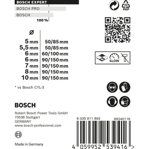 Hasta 5 veces más precisa que la broca Bosch CYL-3 – En las obras de construcción actuales es necesario trabajar con muchos materiales diferentes, y nunca se sabe qué habrá que perforar a continuación. Encontrar la broca adecuada puede ser difícil y llevar mucho tiempo, a menos que dispongas de la broca EXPERT MultiConstruction. Esta broca altamente versátil puede perforar con precisión y sin patinar materiales duros como el granito por su punta afilada y su diseño geométrico avanzado. Fabricada con carburo optimizado mediante nuestra técnica de fabricación de desbaste fino, también se puede utilizar en hormigón, ladrillo, azulejos blandos, madera y metal. Siempre puedes realizar un trabajo profesional, en cualquier material. La broca cilíndrica Bosch EXPERT CYL-9 MultiConstruction es la broca que siempre debes tener en tu caja de herramientas: nunca deja un trabajo a medias ni te hace perder el tiempo buscando la broca adecuada. Vástago cilíndrico compatible con portabrocas de tres mordazas.