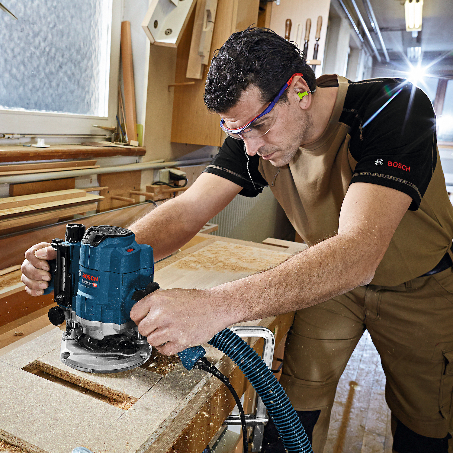 - Diseñado para enrutar ranuras, ranuras, rebatir y unir en madera maciza blanda y dura, así como compuestos de madera