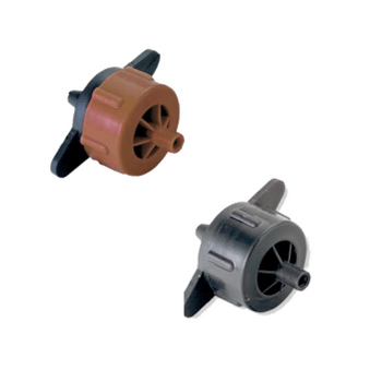 El gotero autocompensado es desmontables de 4 y 8 litros a la hora (marrón y negro) que alcanzan estos litros trabajando a 1.5 atm. de presión