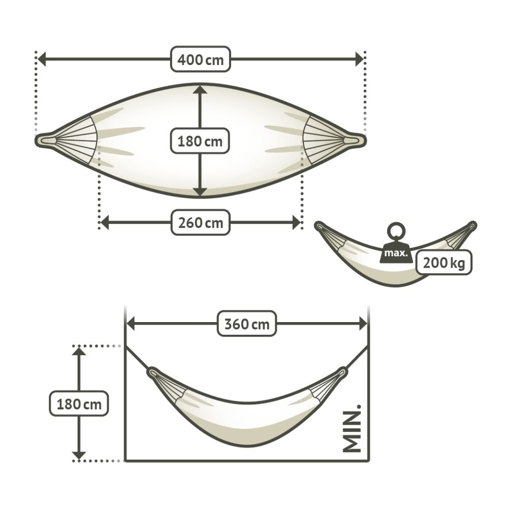 El número de cordones de sujeción influye en la comodidad y a la durabilidad de una hamaca. Cuantos más sean, más uniformemente se distribuirá el peso. ¡Disfruta de una sensación de ingravidez!