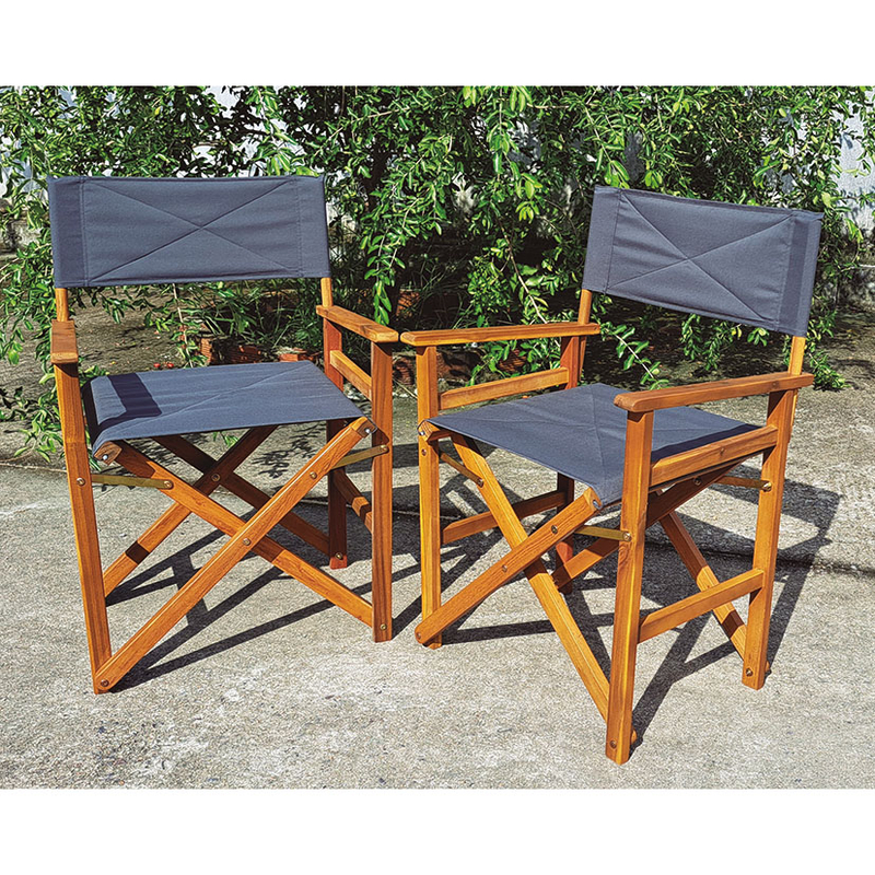 El Juego de 2 sillones director plegable de jardín Mediterráneo es la opción perfecta para completar tu espacio exterior. Con una estructura en madera de acacia y asiento y respaldo en loneta, estos sillones ofrecen gran durabilidad y resistencia a la intemperie, lo que los convierte en ideales para jardín, terraza o porche.