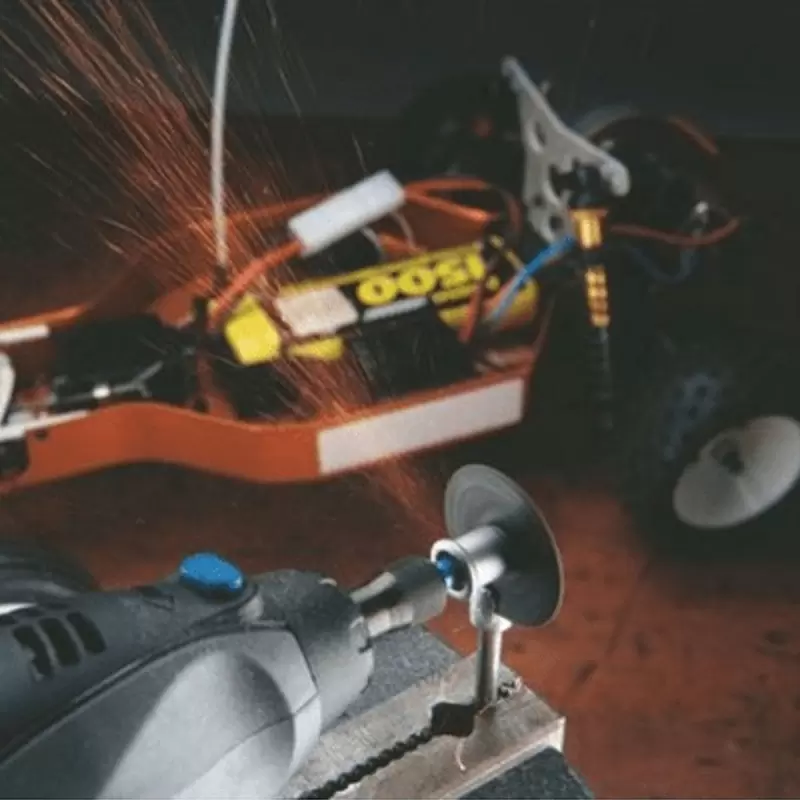Disco de corte con espesor reforzados con fibra de vidrio. Ideal para cortar y aparar todos los tipos de metal. Uso limitado en maderas finas y plástico. El disco corta solamente en sus bordes; no intente lijar o hacer orificios curvos con él. Usar adaptador EZ-402. Para usarse con Dremel 3000 y Dremel 4000.