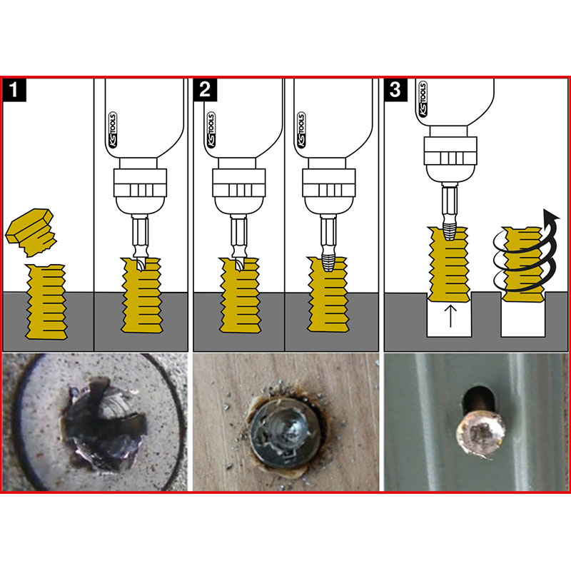 Equipado con: – 2 x puntas extractoras especiales para tornillos Torx de 1/4″, TE10 – TE15;