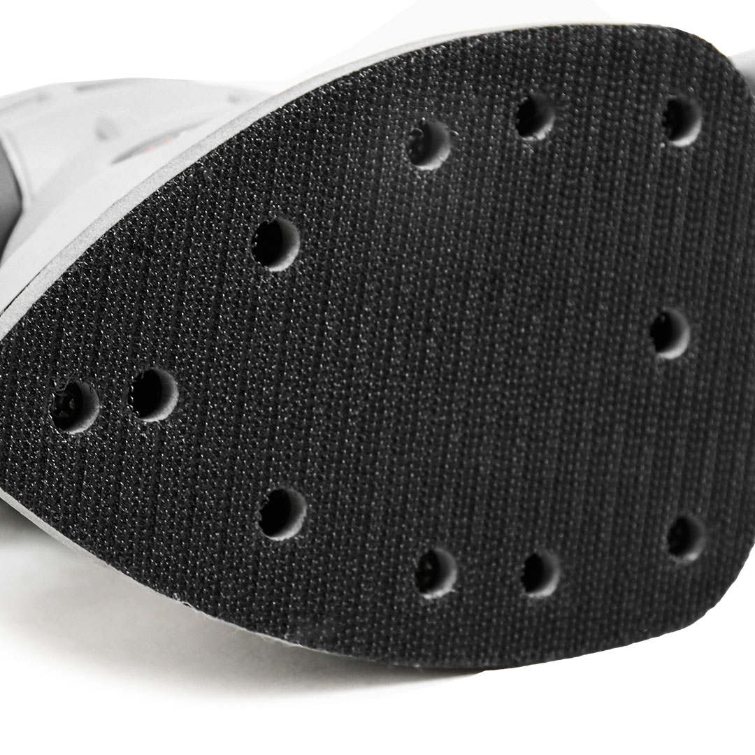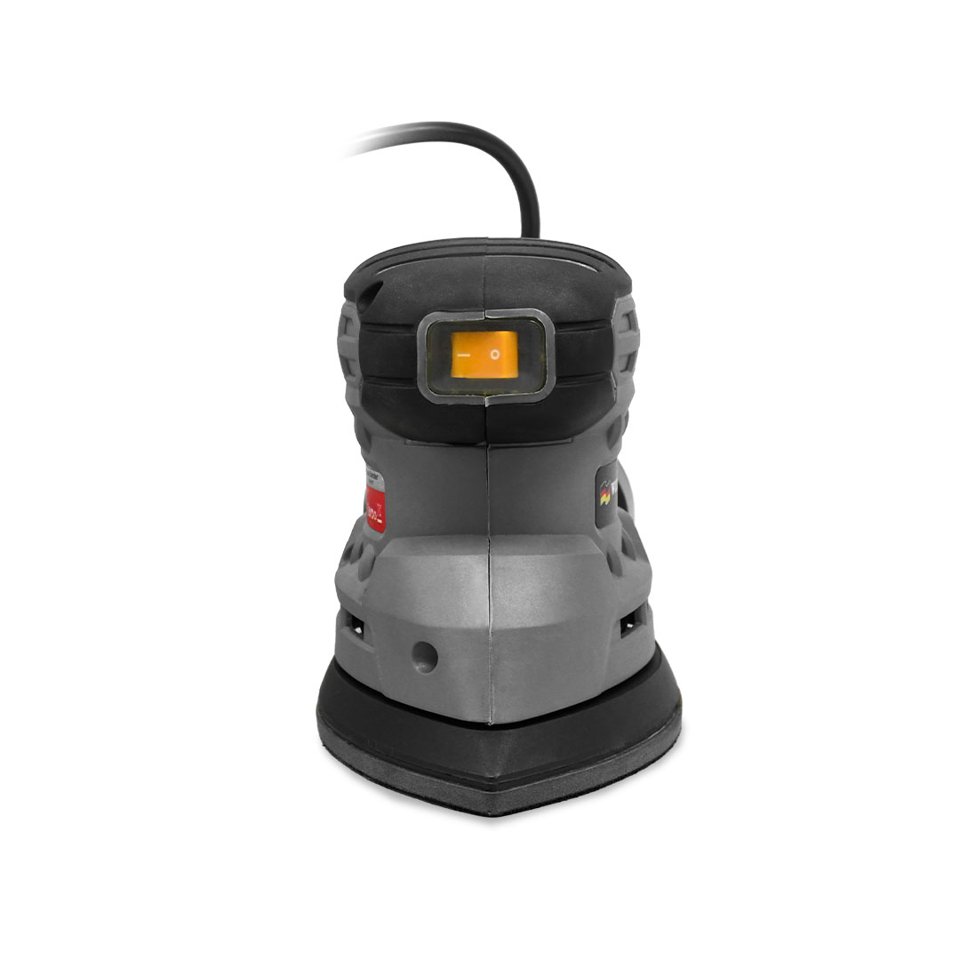 Lijadora orbital triangular liviana, compacta y anatómica para mejor uso. Agarre cómodo para dar mejor estabilidad al lijado. Sistema de sujeción de lijas con velcro seguro y fácil de cambiar.