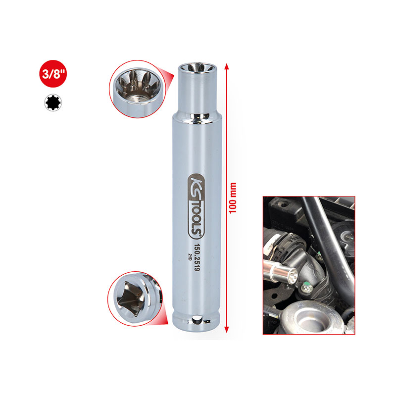 Propiedades generales: – Para tornillos con perfil similar al RIBE®; – Para aflojar y apretar tornillos de fijación de tubos de aspiración; – Cuadrado interior según DIN 3120 / ISO 1174 con rejilla de recogida de bolas; – Para accionamiento manual; – Satinado mate; – Cromo vanadio.