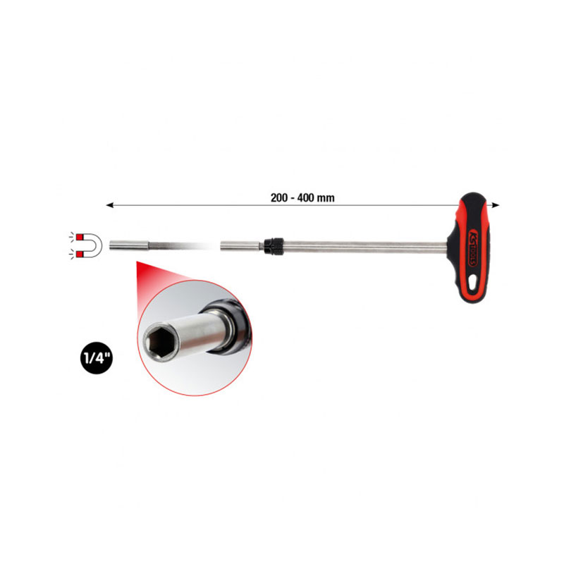 Propiedades generales: – Mango magnético; – Modelo extralargo; – Para brocas de 1/4″ con hexágono interior según DIN 3126 / ISO 1173 – C 6,3; – Con mango de 2 componentes; – Ajustable a 10 niveles; – Con función de portapuntas de cambio rápido; – Transferencia perfecta de la fuerza de rotación; – Hoja de cromo vanadio.