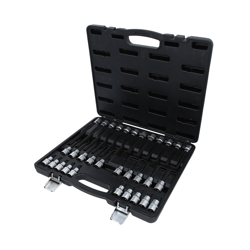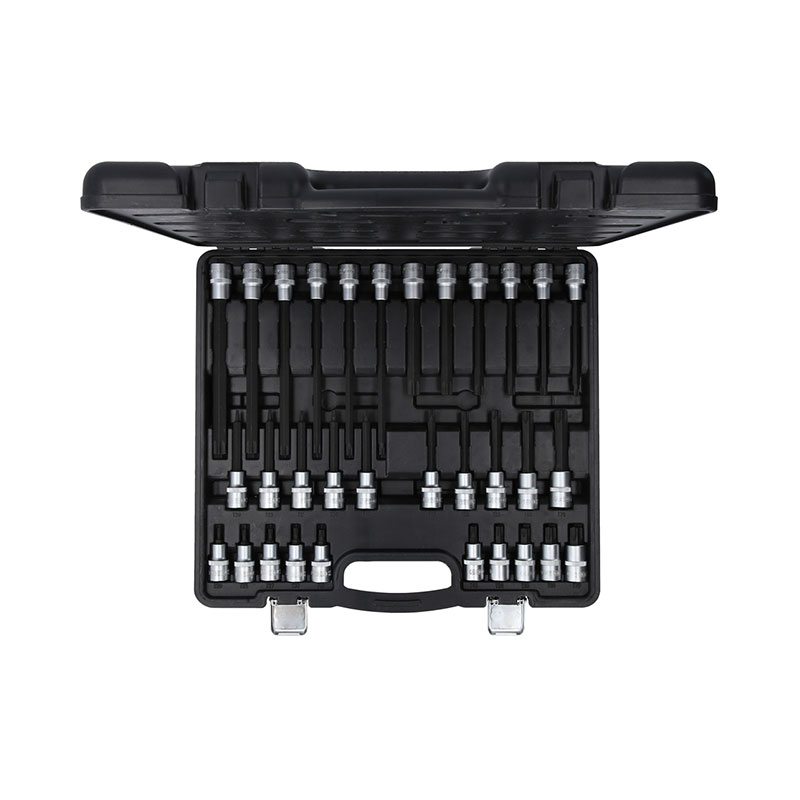 Equipado com:– 10x Ponta de chave de caixa de bits Torx de 1/2″, curta, T20 – T25 – T27 – T30 – T40 – T45 – T50 – T55 – T60 – T70;