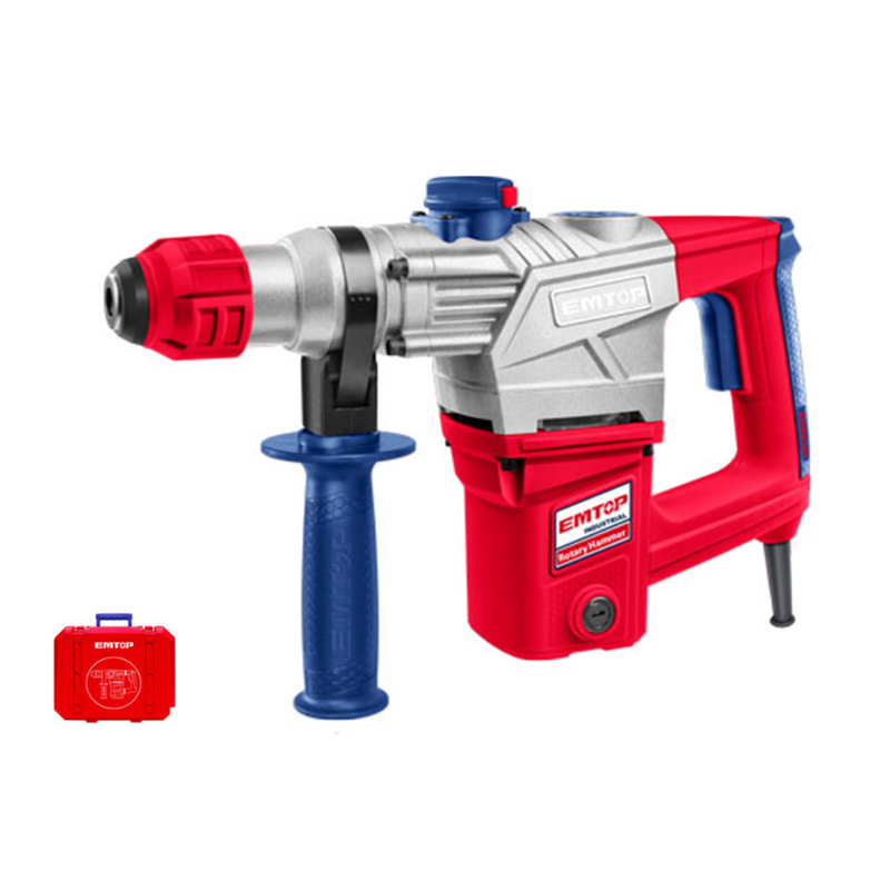 Potencia y Eficiencia en Demolición y Perforación El Martillo Percutor 1050W EMTOP 5J es una herramienta robusta diseñada para enfrentar los retos más duros en cualquier sitio de construcción. Este martillo percutor combina una potencia de 1050W con un rendimiento excepcional, capaz de trabajar en paredes y suelos de diversos materiales y durezas. Es perfecto para levantar baldosas, picar pavimentos y realizar trabajos intensivos sobre superficies muy duras.