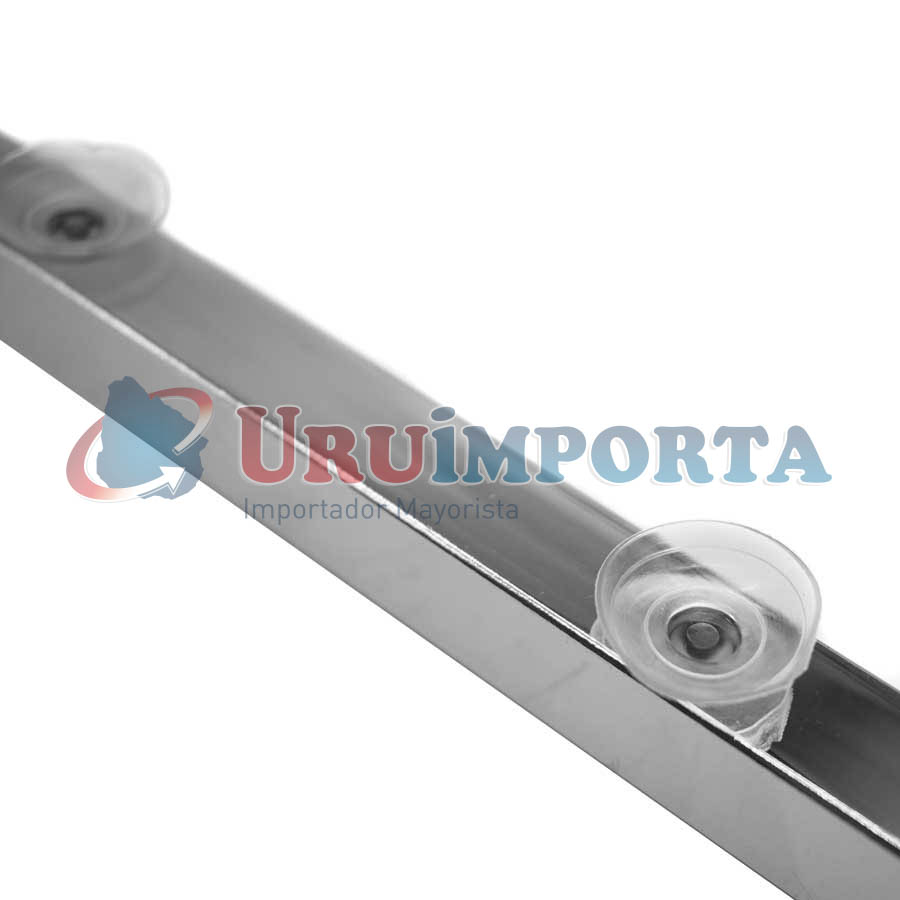 Cuenta con dos ventosas para adherir al vidrio y con un orificio para colgar desde otra superficie