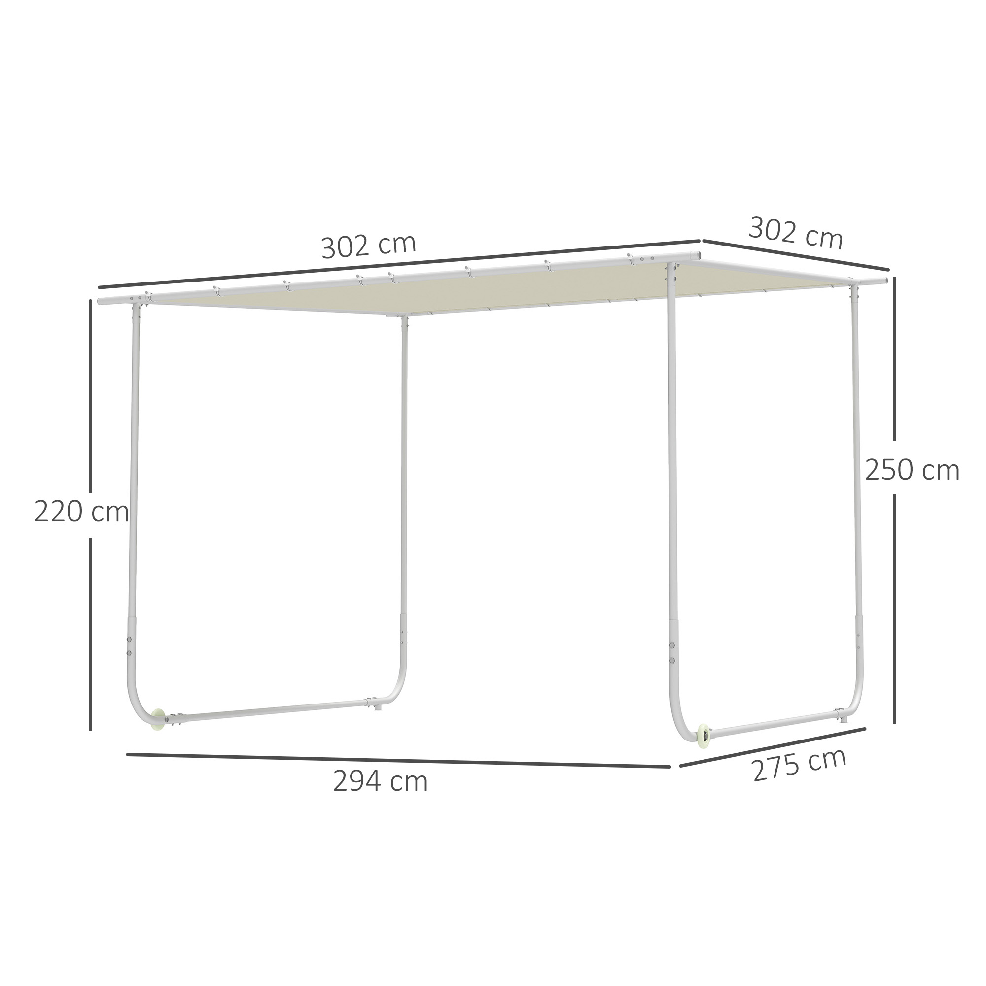 La principal ventaja de esta pérgola de jardín de Outsunny es su movilidad. Con ruedas incorporadas, puede moverse fácilmente por tu espacio al aire libre, permitiéndote ajustar la sombra o la exposición al sol según sea necesario. Esta característica es particularmente beneficiosa si tienes un arreglo de asientos flexible o quieres crear diferentes zonas en tu patio o jardín. Características: Con ruedas incorporadas, este refugio para jacuzzi puede moverse fácilmente al aire libre Cubierta de pérgola de poliéster con revestimiento PA UV30+ Cuerdas elásticas para una instalación rápida y fácil de la cubierta Marco de acero con revestimiento en polvo para un núcleo resistente Los sacos de arena hacen que la pérgola sea más estable y resistente al viento (cada uno puede llenarse con 8 kg de arena) Se requiere montaje Especificaciones: Color: crema Material: acero, tela de poliéster Medidas totales: 302x302x220/250 cm (LxANxAL) Espaciado de columnas: 294×275 cm (LxAN) Nivel a prueba de viento: 4-5 (con sacos de arena) Capacidad de nieve: 7 kg/㎡ Referencia: 84C-453V00CW El paquete incluye: ● 1 x Pérgola; ● 4 x Saco de arena; ● 1 x Manual de instrucciones