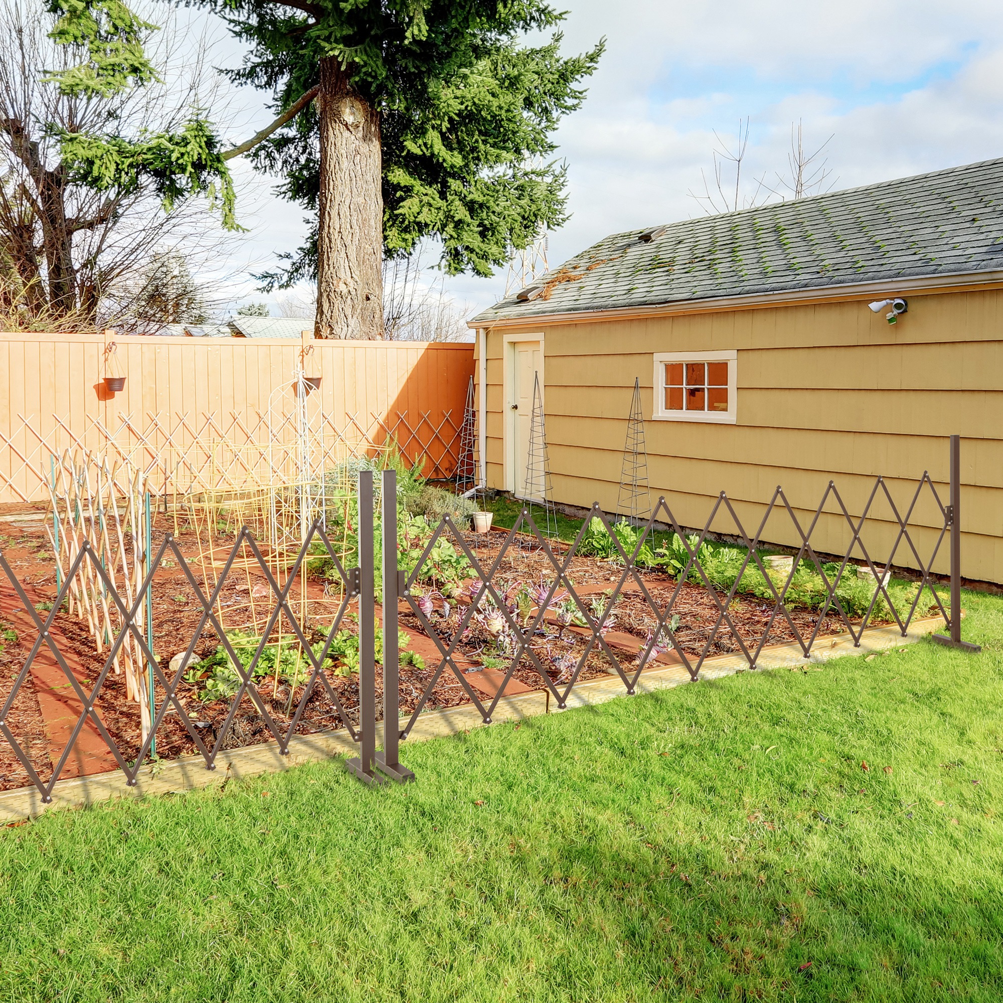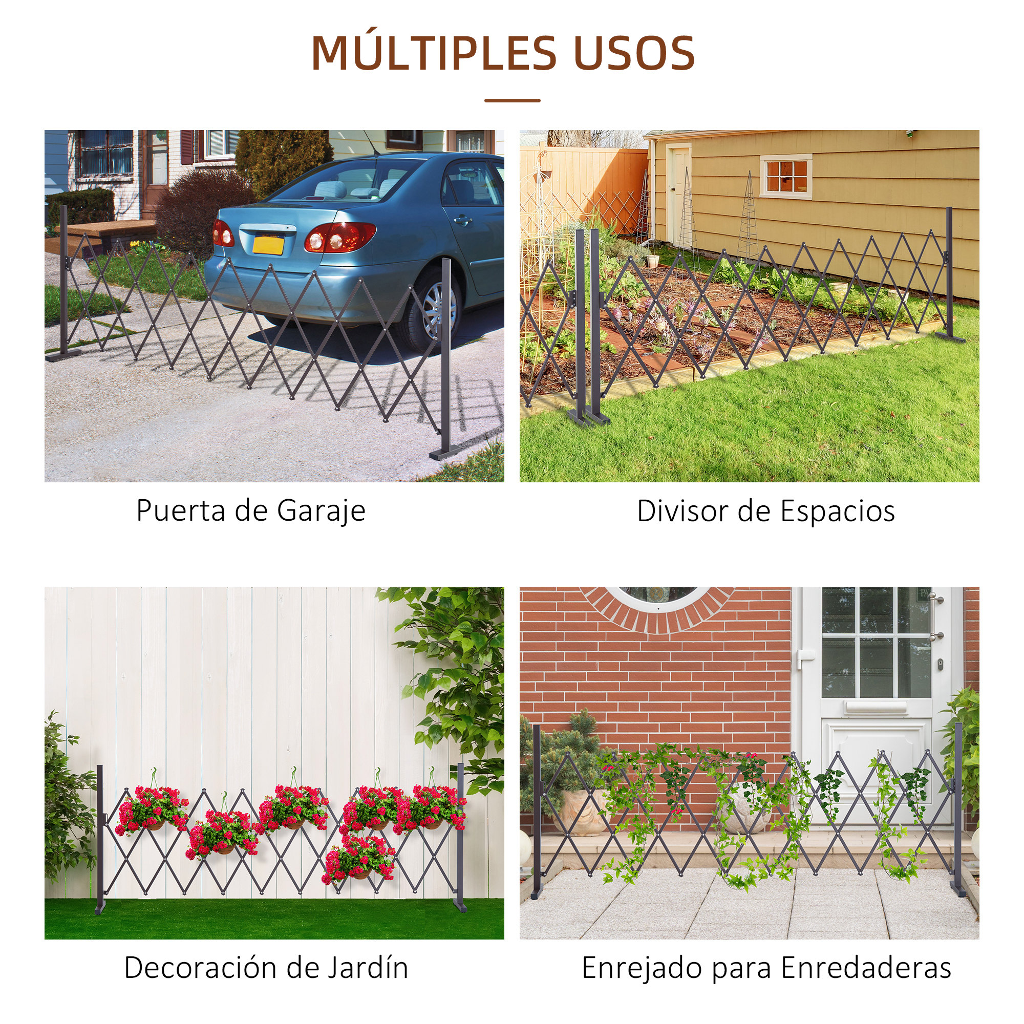 Esta valla de jardín exterior extensible es perfecta para proteger áreas y accesos, ofreciéndote seguridad adicional en tu hogar o jardín. Esta valla metálica está fabricada con aluminio y metal de alta calidad, garantiza resistencia y durabilidad. Su diseño extensible permite cubrir hasta 2,50 m de espacio, adaptándose a diferentes necesidades. Además, se retrae fácilmente para ahorrar espacio cuando no está en uso, lo que la convierte en una solución práctica y funcional en el día a día. Características: Valla metálica extensible ideal para instalación interior o exterior, en escaleras, jardines, terrazas, entre otros Se retrae fácilmente para un uso práctico y para ahorrar espacio cuando no está en uso Extensible hasta 250 cm, permitiendo cubrir y proteger amplias zonas de acceso Diseño en acordeón color chocolate que se adapta a la perfección en tu espacio Fabricada con materiales robustos (aluminio, metal) para una larga durabilidad Esta cerca de jardín exterior está equipada con patas de soporte antideslizantes para evitar cualquier riesgo de vuelco Especificaciones: Color: marrón Material: aluminio, metal Medidas totales: 250x31x103,5 cm (LxANxAL) Medidas plegadas: 31x31x103,5 cm (LxANxAL) Referencia: 844-137 El paquete incluye: ● 1 x Valla retráctil para jardín