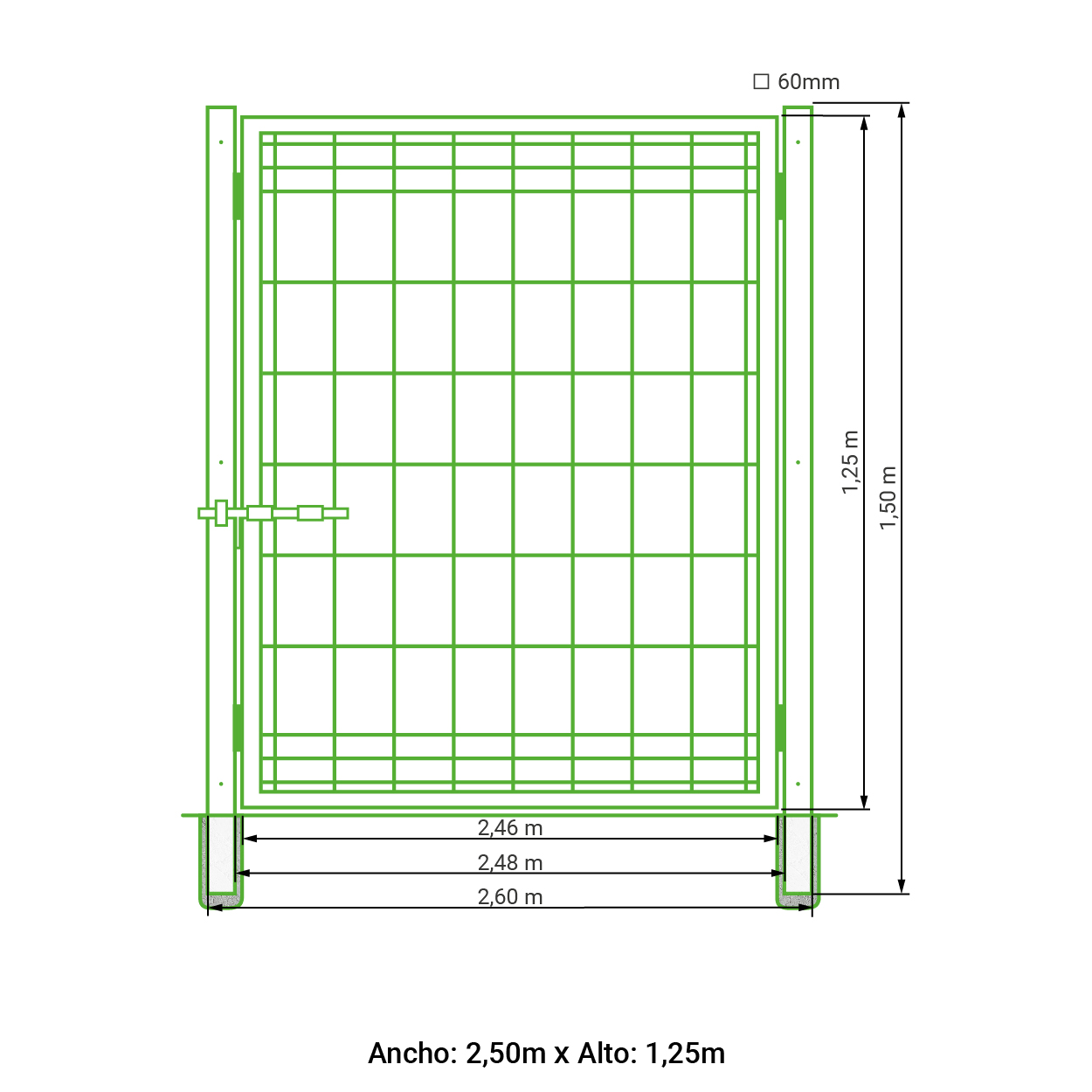 Puerta abatible 1 hoja hércules verde 1,25 metros alto x 2,50 metros ancho