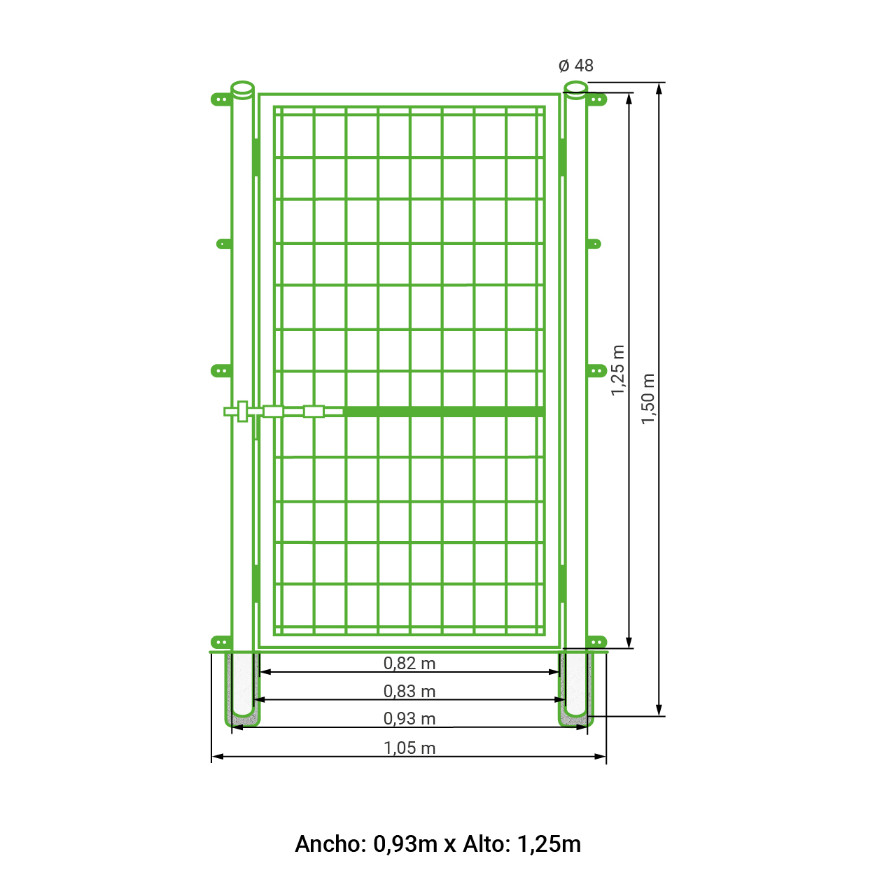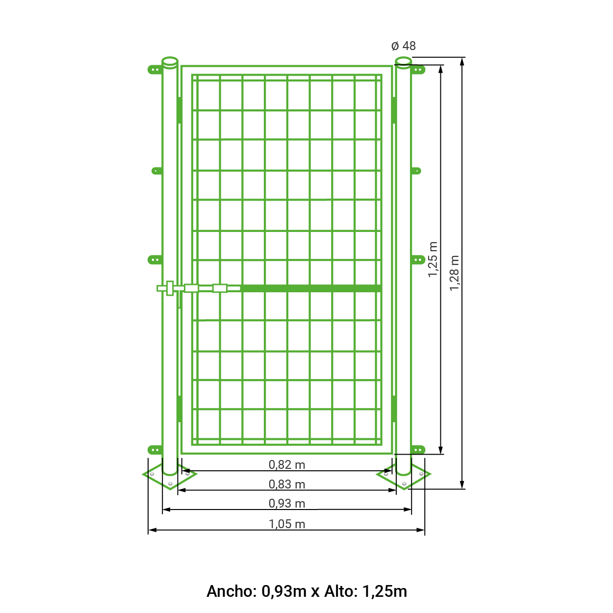 Puerta peatonal para malla simple torsión lacada verde 1,25 metros alto