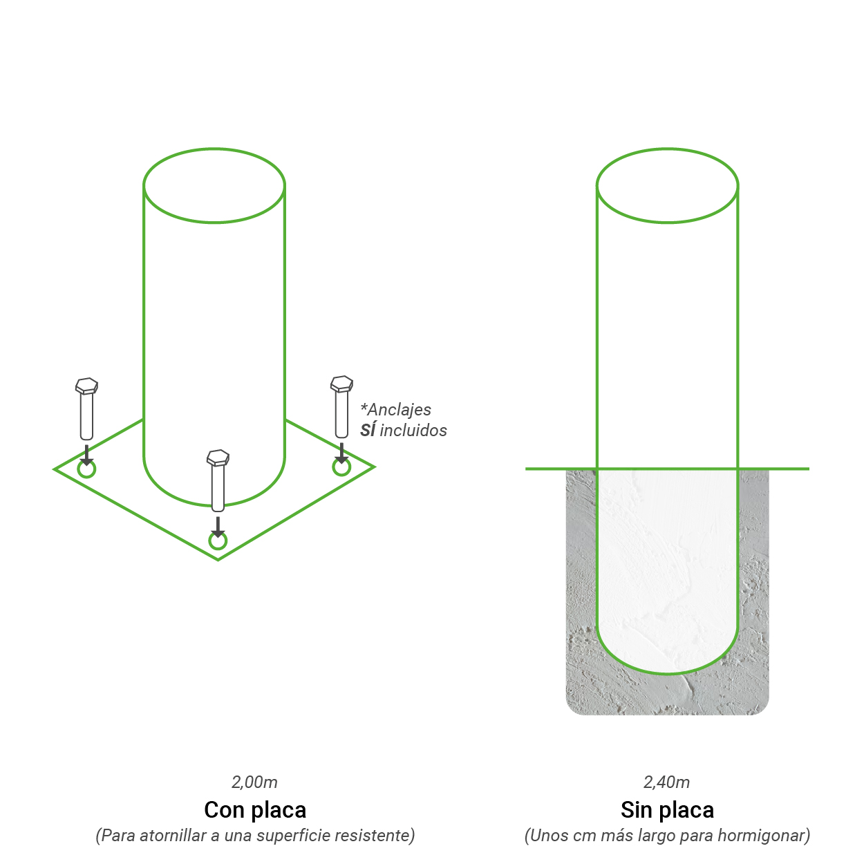 - Opción «con placa» incluye anclajes metálicos