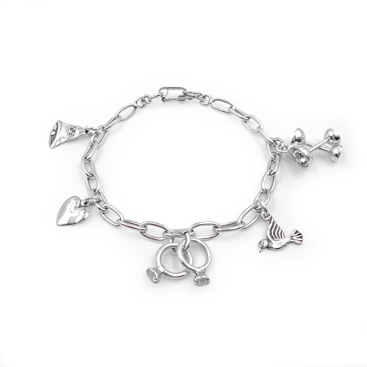 Pulsera para dama con dijes wedding, elaborado en Plata 950/925.