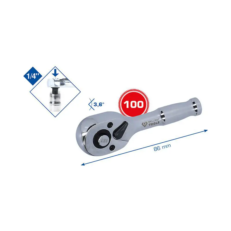 – Carraca extremadamente corta para su uso en espacios reducidos;