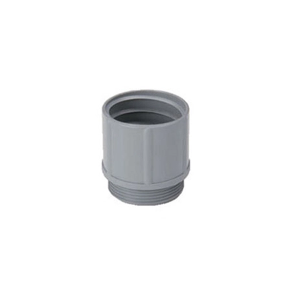 - Conector de plástico con rosca interior para acoplamiento a tubos helicoidales flexibles con alma rígida de PVC.