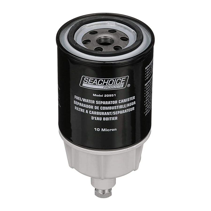 El kit de filtro Seachoice para motores intrabordas de combustible y agua evita daños en el motor al separar el agua y otras partículas del combustible antes de que llegue al motor. Cuenta con un recipiente de metal para mayor resistencia, durabilidad y resistencia a la corrosión.