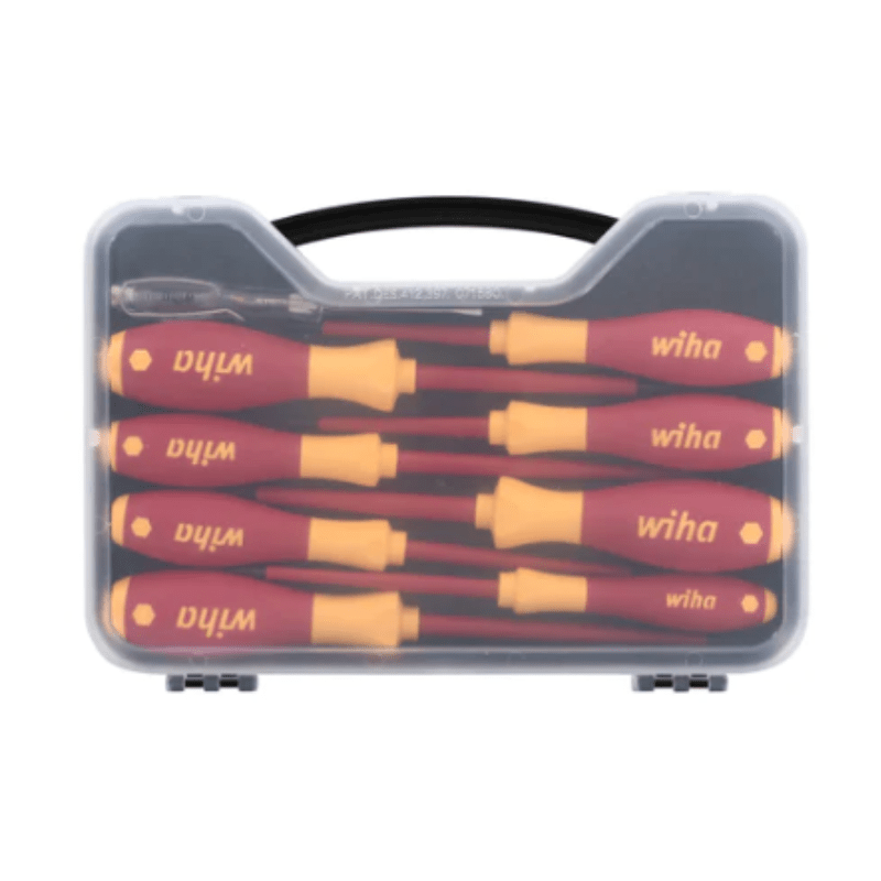 Los mangos tienen un tamaño proporcional a la hoja para una ventaja mecánica consistente, incluyen partes planas paralelas para evitar que la superficie de la mesa se deslice y tienen perfiles de punta del conductor etiquetados en la tapa para una fácil identificación. Los controladores con agarre acolchado SoftFinish® aislados de Wiha están hechos de acero para herramientas de primera calidad diseñado por Wiha para mayor resistencia y durabilidad, tienen un acabado de óxido negro para protección contra la corrosión y cuentan con puntas mecanizadas de precisión de ajuste exacto para reducir el desplazamiento.