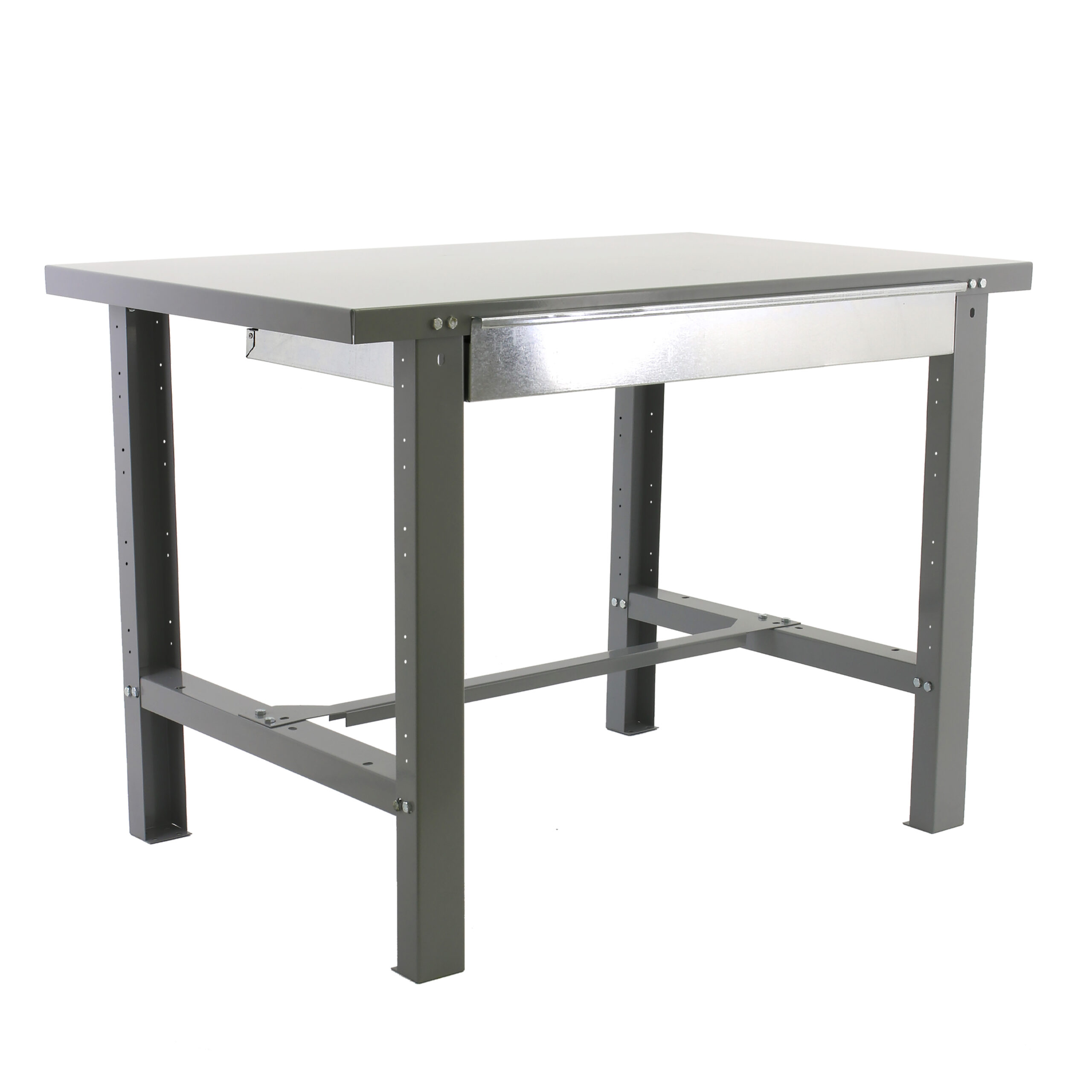 Banco de trabajo con tornillos y bandeja metálica. Incluye cajón para guardar herramientas. Es de color GRIS. Las dimensiones de este banco de trabajo son: 830x1200x730 mm. Y tiene una capacidad de carga de 600 kgs. El cajón aguanta hasta 35 kgs y cuenta con guías telescópicas para una mayor facilidad de uso. Está fabricado en España y se monta fácil siguiendo las instrucciones.