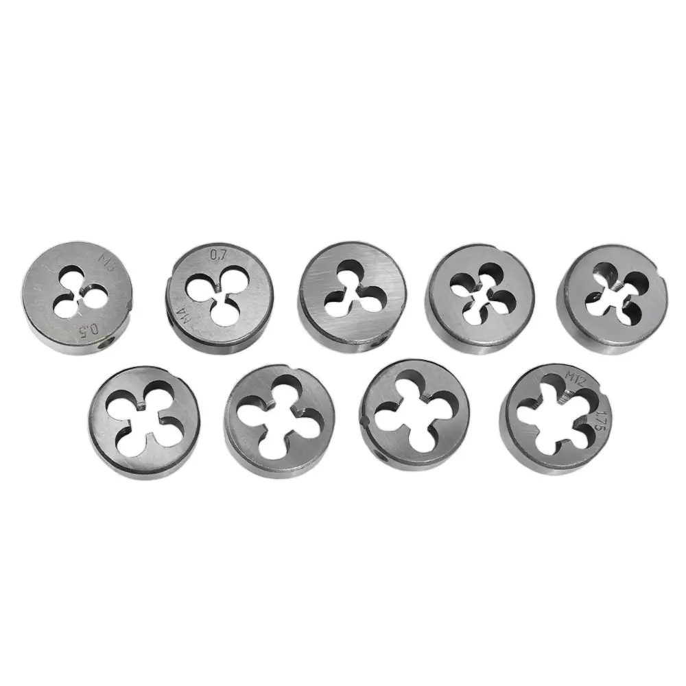 *9 Terrajas hembra, diámetro 1″: M3X0.5, M4X0.7, M5X0.8, M6X1, M7X1.0, M8X1.25, M9X1.25, M10X1.5 y M12X1.75