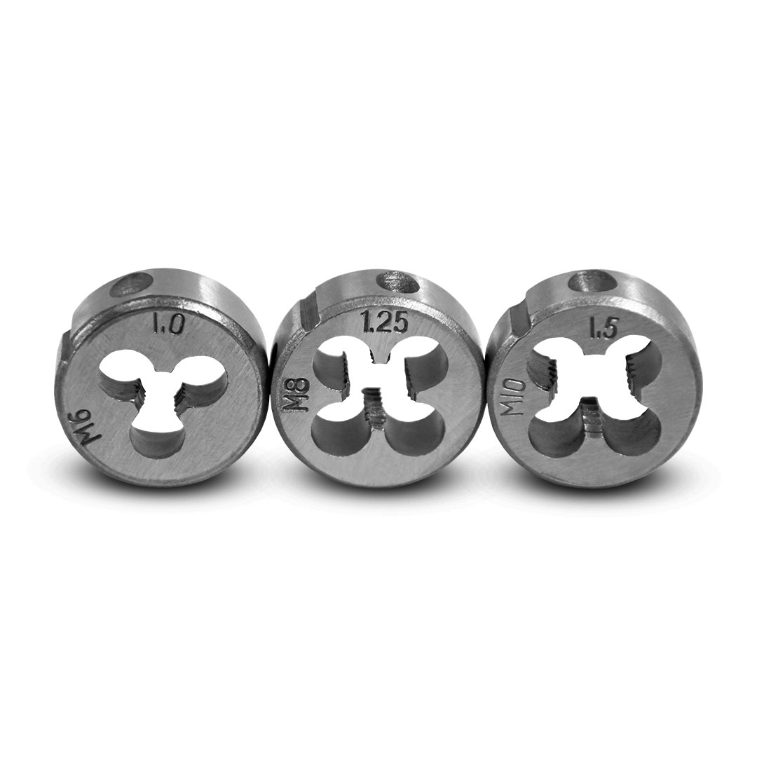 *7 Terrajas hembra, diámetro 1”: M3x0.5, M4x0.7, M5x0.8, M6x1.0, M8x1.25, M10x1.5 y M12x1.75.