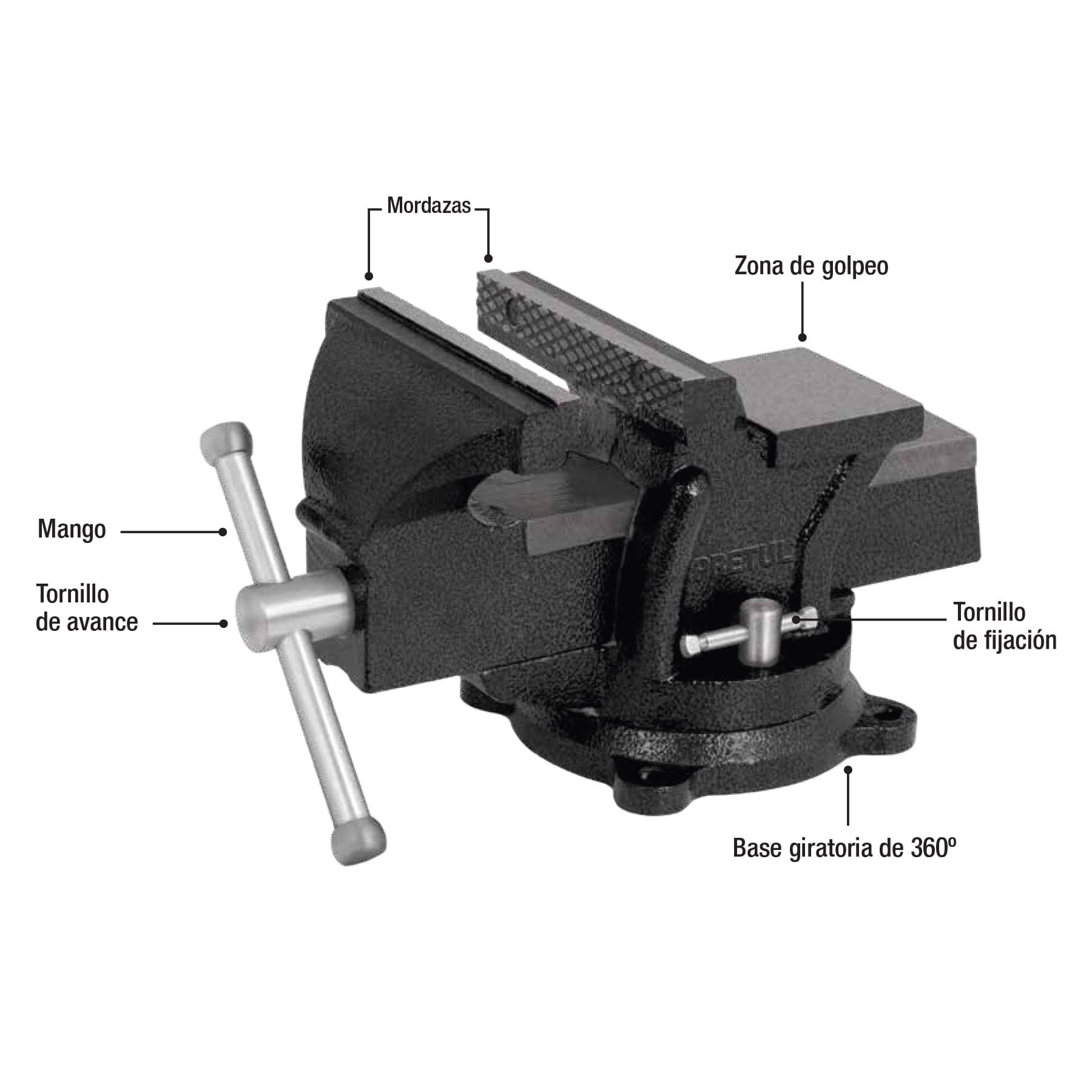 | Código | Clave | Ancho de mordaza | Apertura máxima | Dimensiones (Alto x Base x Fondo) | Peso |